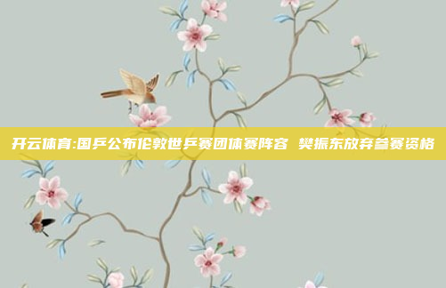 开云体育:国乒公布伦敦世乒赛团体赛阵容 樊振东放弃参赛资格