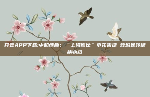 开云APP下载:中超综合:“上海德比”申花告捷 蓉城逆转继续领跑